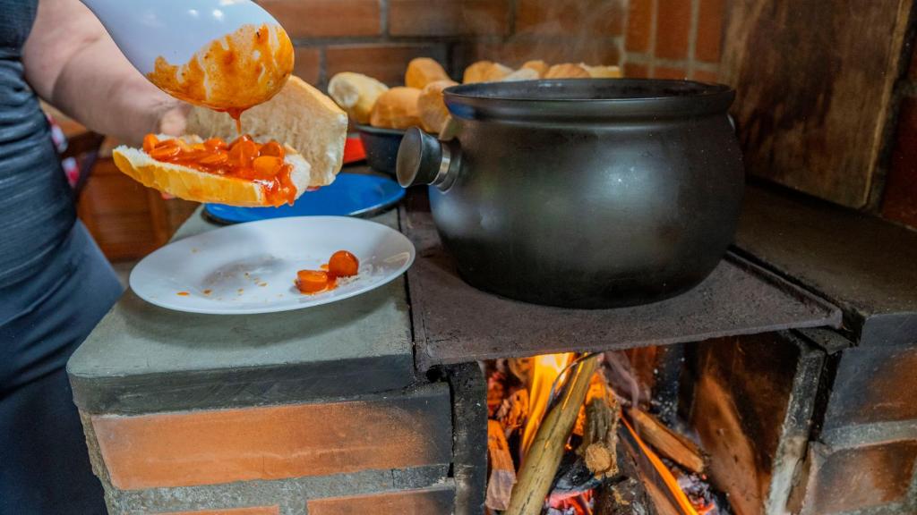 O espaço gourmet pode ser utilizado pelos hospedes para fazer churrasco ou até mesmo a sua fornada de Pizzas, temos cozinha a disposição do hospede e forno a lenha.